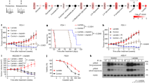 These findings indicate that hyperlactylation of BLM at the K24 site plays an important role in inducing anthracycline resistance in cancer cells. Hence, we speculated that targeting BLM lactylation could rescue anthracycline resistance. Small-molecule drugs with high binding affinities and polar interactions with the BLM K24 region were screened from the DrugBank database via molecular docking and high-throughput screening. Among these, irinotecan (DB00762), a topoisomerase I (TOP I) inhibitor, showed the highest affinity for the BLM K24 region, as evidenced by a marked difference in the average affinity for BLM-WT and BLM-K24R (Fig. 6a, b). SPR assays further demonstrated a strong binding affinity between irinotecan and BLM-WT, with a KD value of 2.51e-7 M (Fig. 6c). Notably, we did not observe a binding signal between irinotecan and the BLM-K24R mutant (Fig. 6d), whereas the binding affinities of irinotecan toward the K31R and K38R mutants remained unaffected by site mutagenesis, with KD values of 7.76e-7 M and 9.11e-7 M, respectively (Supplementary Fig. 8a, b). Additionally, the 100 ns unrestricted molecular dynamics simulation assays revealed that irinotecan consistently bound to the K24 region of BLM throughout the simulation period (Supplementary Fig. 8c). The RMSD of the irinotecan–BLM protein complex remained stable at approximately 1 nm, indicating a stable interaction (Supplementary Fig. 8d). The molecular mechanics/generalized born surface area (MMGBSA) was subsequently used to calculate the binding free energy between irinotecan and the K24 region of BLM, which remained at approximately −25 kcal/mol, suggesting spontaneous and sustained binding of irinotecan to the K24 region of BLM (Supplementary Fig. 8e).
