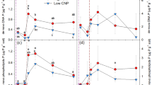 Soil pH was measured after shaking soil in a water suspension of 1:2.5 soil:water ratio for 30 min. Soil microbial biomass P was determined using the chloroform fumigation-extraction method [27]. Concentrations of total N in soil were determined using a Flash EA 1112 elemental analyzer (Thermo Scientific, USA). Concentrations of total P in soil were determined using the molybdenum blue colorimetric method after digestion with H2SO4–HClO4. Soil N:P was calculated by dividing the concentrations of total N by total P. Available P in soils with pH below 7.0 was extracted using 0.5 mol L−1 HCl and 0.025 mol L−1 H2SO4, while that above pH 7.0 was extracted with 0.5 mol L−1 NaHCO3, pH 8.5 [27]. The extracted P was measured as above. Soil P fractionation, including Al–P, Fe–P, Ca–P, and O–P (occluded-P), was carried out according to Hedley et al. [28]. The total inorganic P content was calculated as the sum of the concentrations of Al–P, Fe–P, Ca–P, and O–P.