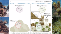 Coral reef ecosystems are being challenged by anthropogenic pressures that are resulting in unprecedented rates of decline [1,2,3]. The cumulative effects of climate change (e.g. ocean warming and ocean acidification) and local pressures (e.g. overfishing and eutrophication) reduce the resilience of coral reef ecosystems [4, 5] and lead to a transition from healthy, coral-dominated ecosystems to degraded reefs, often characterised by enhanced macroalgae biomass [6, 7]. The increase of macroalgae in coral reef ecosystems at the expense of coral species abundance and diversity fosters a perpetuating cycle of reef degradation, hence, high macroalgae biomass is often considered a sign of poor reef health [7, 8].
