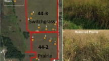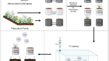 Switchgrass (Panicum virgatum L.), a tall perennial deep-rooted grass native to the Central North American Plains, is a well-studied bioenergy crop, and thought to be suitable for large-scale cultivation in the USA [9]. Switchgrass may even be implemented more broadly as it has been projected to grow favorably in numerous regions globally, both with and without irrigation [10]. This enthusiasm stems from switchgrass’ high productivity even on low-quality soils unfit for traditional row-crop agriculture, with little to no additional inputs [11]. Long-term cultivation experiments suggest that switchgrass can provide a net input of C into soil [4, 12, 13]. Therefore, large-scale switchgrass cultivation may help to simultaneously offset GHG emissions and improve soil quality through C sequestration at nutrient-poor sites [14]. Switchgrass is also known to be highly drought tolerant [15] and can prevent topsoil erosion owing to its high root biomass, which increases the surface area for exudation, and can further improve soil C stability and aggregate formation [16, 17]. Like other perennial crops, switchgrass has been broadly associated with increases in soil C at many experimental sites across the central Great American Plains [18,19,20]. However, only a few studies have evaluated switchgrass cultivation at sites with low soil N, C, or P contents or in marginal lands that have experienced high rates of topsoil erosion [4, 21]. Thus, we currently have a very limited understanding of how switchgrass row-crop systems in nutrient-poor marginal lands can affect (i) soil geochemical composition, (ii) soil microbial diversity, and (iii) overall ecosystem functionality, specifically GHG fluxes.
