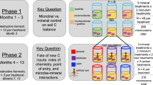The soil mineral assemblage strongly influences SOC dynamics, especially short-range order (SRO) minerals [29,30,31,32]. These non- to poorly-crystalline clay-sized particles—such as allophane, imogolite, and ferrihydrite—protect newly introduced OM or decomposition products from microbial consumption [31, 33]. The presence of SRO minerals has been suggested to control both SOC content as well as mean residence time [29], so may exert considerable control over the quantity and availability of SOC to microbial communities.