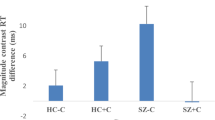 Similar LME analysis on the MID behavioral data revealed a main effect of condition during win-anticipation (F = 55.6, p < 0.001) and loss-anticipation (F = 46.3, p < 0.001) for RT (Supplemental Fig S3). No significant main effects of group, nor interactions were found for RT or percent hit rate data, indicating that groups performed the task similarly. See Supplementary Tables S4–S8 for model summaries and uncorrected p values, as well as Supplementary Tables S9–S13 for consistent model summaries using the two psychiatric samples only.