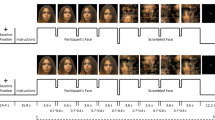 There were two sets of stimuli for the NatV condition: photos of participant’s face and scrambled faces as the control task (Fig. 1a). There were also two sets of stimuli for ModV condition: the same photos overlaid with a semi-transparent crosshair between the eyes, and the scrambled faces with a crosshair (Fig. 1b).