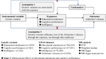 Anderson EL, Howe LD, Wade KH, Ben-Shlomo Y, Hill WD, Deary IJ, et al. Education, intelligence and Alzheimer’s disease: evidence from a multivariable two-sample Mendelian randomization study. Int J Epidemiol. 2020;49:1163–72. https://doi.org/10.1093/ije/dyz280.