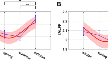 Seasonality has been reported for mood and behavior in patients with psychiatric disorders [1] as well as in healthy individuals alongside inter-individual variations [2]. Growing evidence suggests an essential contribution of monoamine neurotransmitters to seasonal fluctuations of psychiatric symptoms. For instance, blunted seasonal dynamics of serotonin reuptake transporter (SERT) availability [3] and cerebral monoamine oxidase A (MAO-A) levels [4] were observed in patients with seasonal affective disorder compared to healthy individuals. Seasonal fluctuations in neurotransmitters are expected to subsequently modulate brain function. In contrast to the various studies on neurotransmitter activity and seasonality, very few studies have investigated seasonal effects on brain functions [5]. A cross-sectional study from Belgium reported that basic attentional processes were associated with day length, whereas higher-level executive brain responses covaried with day-to-day day length variations [6]. Another study from the US showed that the amplitude of P300 event-related brain potential, which reflects processes involved in high-level cognition such as evaluation and decision-making, was larger in young subjects tested in spring/summer than in fall/winter [7, 8].