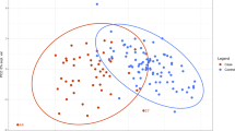 LC–MS-based data were preprocessed as instructed by Biocrates using Xcalibur (v4.1.31.9) for peak integration and after thorough optimization and manual check. The exported feature table was then imported into MetIDQ Carbon-2793 (Biocrates) along with FIA-based raw data for plate validation and concentration calculation. Concentrations were normalized based on QC2 target values in MetIDQ to reduce the batch effect. All measurements were then exported along with their individual status computed by MetIDQ (e.g., “Valid”). For further quality control and preprocessing, we used the MeTaQuaC R package v0.1.32.9001 [14]. All measurements with a MetIDQ status other than “Valid” were replaced by missing values, and only compounds detected in at least 30% of the Biocrates’ QC level 2 samples were kept in the analysis. Furthermore, compounds with 100% missing values in experimental samples and compounds that had >80% missing values in both case and control samples were removed. Finally, we normalized the absolute concentrations of the batch through centering by subtracting the column means (omitting NAs) of each batch and scaling by the standard deviation. The final data table consisted of 173 compounds (33 out of 42 and 140 out of 366 for the LC and FIA injections, respectively, Supplementary Fig. 1) and 406 samples (203 cases and controls, respectively).