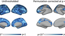 In the discovery cohort, predictive performance of the CPM after cross-validation (as evaluated by the correlation between predicted and real post-treatment PANSS total score reduction) was r = 0.59, P = 3.582 × 10−11 (MSE = 0.021) (Fig. 2a), which was statistically significant according to 5000-permutations testing (P = 0.0002) (Fig. 2b). We also tested the correlation between the individual subject scores obtained by summing the positive and negative features separately, and PANSS total score reduction. In the discovery cohort, the correlation for the positive features was r = 0.53, P = 6.343 × 10−9 (Fig. 2c) whereas for the negative features it was r = −0.54, P = 2.239 × 10−9 (Fig. 2d).