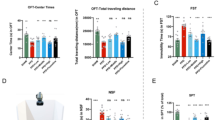 The EPM test is a widely recognized method for evaluating anxiety-like behavior in rodents and was conducted in accordance with protocols from previous studies [18]. The apparatus consisted of two open arms (50 × 10 cm) and two enclosed arms (50 × 10 × 40 cm), which were arranged in a plus shape and elevated 50 cm above the floor. To reduce stress and allow animals to adjust to the test conditions, a 30–45 min acclimatization period in the testing room was provided before starting the experiment. Each mouse was gently placed on the central platform facing an open arm, marking the beginning of the trial. An observer, unaware of the animals’ treatment groups, accurately recorded the number of entries and the time spent in each arm over a 5-min period. After each trial, the maze was cleaned with 30% isopropanol to remove olfactory cues and ensure unbiased results for subsequent subjects.