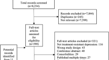 The standardized mean difference (SMD) with a 95% confidence interval (CI) was used as the effect size for changes in depression scores.