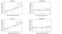 In both groups, PD and CAL reduced significantly at the 12th week as compared to their baseline values (Tables 2 and 3). Intergroup comparison of improvement in PD and CAL in WD and in different regions of dentition revealed no significant differences (Table 4), with the exception of higher improvement in PD at palatal sites of maxillary anterior teeth in the NB group.