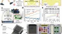 The oral monitoring device, based on the device used in ref. [15], consisted of a flexible design that continuously measures several intra-oral signals (including temperature) at the same time. It was vacuum formed using ethylene-vinyl acetate (EVA). A maxillary vinyl polysiloxane impression (R&S Turboflex) was taken in disposable perforated plastic impression (Medibase) and cast in vacuum mixed Type 4 dental stone (Singletypo4). A single 1.20 mm layer of EVA (Pro-form) was then applied on the working cast with a pressure-molding machine (Kezham XG-E01). The applied sheet was trimmed leaving a 2–3 mm margin along the gingival margins of the teeth and the posterior borders. A custom-designed data acquisition system containing an ARM Cortex-M4 microprocessor (STM32L476JGY, STMicroelectronics, Switzerland) capable of running at up to 80 MHz, a Bluetooth 4.2 network processor (BlueNRG-MS, STMicroelectronics, Switzerland), a flash memory (S25FS512SDSBHV213, Cypress Semiconductor, USA) and a digital temperature sensor (MAX30208, Maxim Integrated, USA), with ±0.1 °C manufacturer accuracy from +30 to +50 °C, were secured on the first layer of EVA using an appropriate adhesive (Loctite). A schematic overview of the design is provided in Fig. 1. For this study, the data acquisition board was connected to the MAX30208 Evaluation System to standardize the data collection using the MAX30208EVKitSetupV100 PC GUI program. The sensor board was placed at the buccal side of the upper first molar to avoid as much as possible intra-oral temperature variation, due to the inhalation related airflow [16, 17]. Since the aim is to assess sensor accuracy in a lab environment, the Bluetooth communication was not used. The device was tethered ensuring robust data collection throughout all experimental conditions. The wires from the measuring components (total length ~25 cm) were positioned to exit the mouth from the front, to minimize occlusal interferences. Red electric tape was used to keep the wires in place during the forming process (Fig. 2). A pH sensitive comparator paper strip was positioned along the wires to detect any potential water ingression. A second layer of EVA was applied once the board was in place, which then bonded to the first layer. Excess EVA was trimmed according to the outline of the previously applied layer. The edges were smoothed and rounded with a heated wax knife to improve the comfort when being worn intra-orally (Fig. 1).