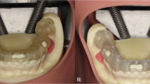 To simulate clinical conditions, a more biologically representative lower jaw model was created. Artificial D2-density mandibles (Model #1522-42, Sawbones, Vashon Island, WA, USA) were used as the bone base. The mandibular model surface was optically scanned (Up3D 300e, Up3D Dental, Seoul, Korea) and a soft tissue layer was designed by extruding the surface geometry by 1.5 mm—the average mucosal thickness in edentulous mandibles [9]. This gingival layer was 3D printed using Asiga Dental Gum resin (Asiga, Australia) and bonded to the mandible using adhesive spray (Figs. 1 and 2) [34].