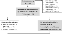 RT-MLPA has the capacity to easily detect many rearrangements and its fast turnaround time and superior exhaustivity and reduced cDNA consumption could make it an interesting alternative to RT-PCR. Such a screening strategy will also identify patients with targetable rearrangement such as ABL1 [57] (with tyrosine kinase inhibitor) or KMT2A (with Dot1l or menin inhibitor) [40, 60] or who have poor prognosis and require treatment adaptation. However, RT-MLPA only allows detection of known fusion transcripts. New fusion transcripts detected by T-ALL RNA sequencing can easily be added to the RT-MLPA, thus providing a complement and extension to RNA-Seq approaches. In addition, the excellent specificity of this method was already demonstrated on a previous cohort of 540 patients with acute leukemia, confirming virtually all (98%) fusion transcripts detected by RT-PCR and Sanger sequencing [26]. As such, it is well adapted to routine clinical screening in Acute Leukemia.