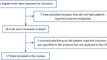 The review of interventional study papers highlighted the main limitations with the PRO instruments or analysis/results as reported by authors (Table 2). Some issues are those generally affecting PROs rather than specific to the QLQ-MY20 such as differential dropout or poor completion rates potentially biasing the analysis, low baseline levels of symptoms limiting the opportunity to show improvement, single arm studies, short term PRO data collection and lack of standardization in collection and analysis of PROs across trials limiting comparison of results across studies. Issues raised which may be more specific to the QLQ-MY20 were the need for thresholds for meaningful change at the individual patient level, the need for consistency across studies in definitions of meaningful change, discrepancy between patient-reported ‘tingling hands and feet’ and the clinician reported peripheral neuropathy events, higher incidence of AEs or more severe AEs not translating into an impact on the PRO scores and potential lack of sensitivity of current questions to pick up variations in HRQoL depending on treatment administered. Another paper suggested that elements such as dosing convenience were currently not adequately measured by the available PROs.
