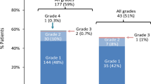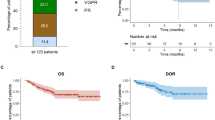 With a median follow-up of 5.3 (range 0.2–16.3) months, the 6-month PFS and OS rates were 53% (95% CI, 46–61%) and 73% (95% CI, 67–80%), respectively (Fig. 2). Median DOR among responders was estimated to be 11 (95% CI 11-NR) months.