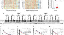 Next, we analyzed the expression of HOXC10 in the primary and metastasis subgroups of pan-KRAS-mutant cancer using The Cancer Genome Atlas (TCGA) datasets. The results showed that HOXC10 mRNA levels were dramatically higher in the metastasis subgroups than in the primary subtype (Fig. 1f). We further explored the association between HOXC10 expression and the survival outcomes of patients in KRAS-mutant lung adenocarcinoma (LUAD) subgroups using TCGA datasets. It was found that the patients with high HOXC10 expression had a worse survival rate than those with low HOXC10 expression (Fig. 1g). Analysis of human LUAD datasets derived from TCGA datasets revealed that KRAS expression level was positively correlated with HOXC10 expression level (Fig. 1h). These data indicate that HOXC10 overexpression may represent an independent risk factor affecting bone metastasis and the prognosis of KRAS-mutant cancer patients.