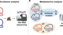 All mice were given ad libitum access to autoclaved water and chow diet (5053 PicoLab Mouse Diet 20 for SPF mice with 24.5% protein, 13.1% fat and 63.4% carbohydrate by calorie density, and 4.4% crude fiber and 2020SX Envigo for gnotobiotic mice with 24% protein, 16% fat, 60% carbohydrate by calorie density, and 2.7% crude fiber).