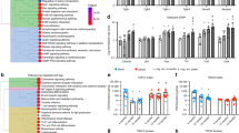 Right femurs were fixed for 4 h in 4% PFA at 4 °C and were subjected to micro-CT scanning in PFA (micro-CT 45, Scanco Medical AG) with an isotropic voxel-size of 10 μm; 55 kVp, 145 μA, 200 ms integration time. A Gaussian filter (support: 1) with a sigma of 0.8 was applied to 3D image data and segmented with a threshold of 392 mgHA/cm68. Cortical and trabecular compartments were identified following the previously described method69. Standard bone morphometric parameters were evaluated (Table S1).