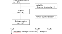 Depending on the severity of AEs, the dose of capecitabine was reduced according to the protocol. When a grade 2 AE developed for the first time, treatment with capecitabine was suspended until the AE improved to grade ≤ 1, and then resumed at the same dose. If a grade 2 AE occurred twice or more and if a grade 3 AE occurred, the dose of capecitabine was reduced by 25%. The minimum dose of 50% of the initial dose was allowed in the protocol.