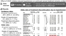 Liu, B., Ding, F., Liu, Y., Xiong, G., Lin, T., He, D. et al. Incidence and risk of hypertension associated with vascular endothelial growth factor receptor tyrosine kinase inhibitors in cancer patients: a comprehensive network meta-analysis of 72 randomized controlled trials involving 30013 patients. Oncotarget 7, 67661–67673 (2016).