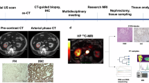The number of early-stage renal cancers that are being detected is increasing, partly due to the rise in the use of cross-sectional imaging such as CT and MRI.86 However, despite the early detection and subsequent treatment of these cancers, there has been no decrease in disease-specific mortality, which suggests that a relevant proportion of these patients might receive overtreatment. Clear cell renal cell carcinoma (ccRCC) has many features that render it amenable to assessment with hyperpolarised 13C-MRI: it is highly glycolytic but well perfused, which is ideal for imaging using an intravenous metabolic contrast agent with a short signal lifetime; it is morphologically and genetically heterogeneous, thus providing a model of metabolic heterogeneity; there is increasing evidence that RCC is driven by metabolic dysregulation, and some renal tumours arise from mutations in mitochondrial enzymes, making it an ideal model to study novel tumour metabolism; and alternative methods to image metabolism, such as [18F]FDG-PET, are limited by contamination from renal excretion of the tracer. Furthermore, as RCC has a poor prognosis, both new treatments and imaging methods to monitor response are required.