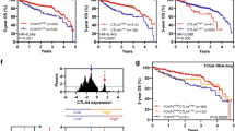 PCA and hierarchical clustering of patients using these 20 probes demonstrated separation and clustering of transcriptional profiles for our immune-related groupings (Fig. 4a, b). Many of the differentially expressed genes are known to be associated with hypoxia, including SPP1. GSEA for a hypoxia signature (WINTERS_HYPOXIA_METAGENE) found significant upregulation of hypoxia-associated genes within immune-cold patients, confirming this association (adjusted P = 0.0005, Fig. 4c). Dichotomised expression of the Winters Hypoxia Metagene signature was significant for predicting overall survival in the S:CORT FOCUS cohort (HR 1.45 [95% CI: 1.13–1.86], P = 0.0033). The transcriptomic analysis was orthogonally validated by assessment of CAIX IHC, a robust inducible biomarker for tumour hypoxia, which has been well characterised and is part of the hypoxia signature assessed. CAIX IHC was quantified as the number of positive cells per mm2 (n = 314). A significant increase in CAIX IHC expression was observed in immune-cold patients compared with immune NOS, thereby confirming the presence of increased tumour hypoxia in these patients (P value = 0.0009; Supplementary Fig. S3B-C). While expression of CAIX IHC was not significant for predicting overall survival, the overall trend remained the same (HR 1.27 [95% CI: 0.98–1.65], P = 0.0713; Supplementary Fig. S3D). Based on hierarchical clustering observed in Fig. 4b, a subgroup of patients who were both immune NOS and hypoxic were identified following further stratification of immune-NOS tumours by tissue hypoxia (Fig. 4e). Interestingly, these patients were less significantly hypoxic than immune-cold patients (P = 0.0295). In view of this observation, we considered these patient groups (immune cold and immune NOS stratified by either high or low hypoxia) for survival analysis in the S:CORT FOCUS cohort (Fig. 4f). A 1.5-fold (HR 1.48 [95% CI: 1.12–1.95], P = 0.0058) and 2.2-fold (HR 2.19 [95% CI: 1.55–3.08], P < 0.0001) increase in risk of death was found in patients who were immune-NOS hypoxia-high or immune-cold compared with immune-NOS hypoxia-low patients. In this context, the combined assessment of CD3, CD4 and CD8 IHC and tumour hypoxia by the Winters Metagene signature was found to be an independent predictor for survival when adjusted for clinical covariates, KRAS status and CRIS-B subtype (Supplementary Table S8).