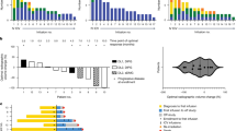 Twenty-four patients provided 1–3 pre- and post-treatment biopsies (median = 2). Evaluable pairs of pre- and post-treatment biopsies were available from six patients. Reductions in tumour microvascular density (five patients, based on CD34 staining) and/or decreases in tumour cell proliferation (two patients, based on Ki67 staining) were apparent (Supplementary Table 5 and Supplementary Figs. 4, 5). There was no clear dose effect regarding the change from baseline in enumerations of circulating tumour cells, circulating endothelial cells, or circulating endothelial progenitor cells.