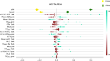 Our study included 1204 subjects (599 cancers, 605 controls) in women aged 47–73 years old. Dates of mammograms included in this study ranged from 2010 to 2015 (Table 1). Of note, the mammograms included our study for the screen-detected cancers was the prior mammogram. Thus, for the women (defined by the inclusion criteria) who underwent screening between 2011 and 2016 and had a screen-detected cancer, as mentioned in the ‘Methods’ section, the prior mammogram was therefore dated earlier than the inclusion criteria range. For the 302 screen-detected cancers, the time between prior screening exam and diagnosis, as defined by first positive biopsy, was an average 1067 days (range: 454–1196). For the 297 interval cancers, the time between screening and diagnosis was an average of 656 days (range: 26–1991). As expected, a higher proportion of screen-detected than interval cancers were in situ, and a higher proportion of interval cancers were node-positive. The 599 cancers in our study included 524 invasive and 75 cases of ductal carcinoma in situ (DCIS)—for more detail, see Supplementary Information, Supplementary Tables 1 and 2.