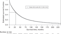 To estimate hazard ratios (HR) for the association between use of β-blockers and BC-specific survival, and associated 95% confidence intervals (CI), we used Cox proportional hazard regression models with time since BC diagnosis as the underlying time scale. Follow-up time started at the date of the BC diagnosis and ended at the date of death due to BC, death due to other causes, emigration, or 31 December 2018, whichever came first. Schoenfeld residuals were used to test the proportional hazards assumption. We used a Cox model adjusted for possible confounders selected a priori based on existing evidence: age (continuous), molecular subtype, histology, year of BC diagnosis (continuous), education (primary, secondary, higher, missing), marital status (not married/not in partnership, married/in partnership, missing), number of children (0, 1, 2, ≥3), country of origin (Norway, other Nordic countries [i.e. Sweden, Denmark, Finland, and Iceland], and rest of the world), and use of (≥1 filled prescription) angiotensin-converting enzyme inhibitors (ACEI), angiotensin receptor blockers (ARB), calcium channel blockers (CCB), diuretics, low dose aspirin, cyclooxygenase2 (COX2) inhibitors, statins, and antidiabetics within 3 months before the BC diagnosis [4, 32,33,34,35]. The ATC codes used to identify use of the medications are listed in Supplementary Table 1. Missing information on covariates was handled as a separate category in the variable. Also, we estimated Kaplan–Meier curves of the BC-specific survival by use of β-blocker, stratified by age (≤median age and >median age of users).