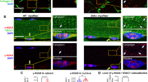 ChIP was conducted as described [18]. Briefly, MKN-45 cells were cross-linked with 1% formaldehyde for 15 min at room temperature and quenching was performed with glycine (125 mmol/L). Nuclear lysates were sonicated using a cell cracker. The chromatin was sonicated into 200-bp (approx.) fragments. The lysates were divided into two portions and incubated, respectively, with 5 μg antibodies against MyoD1 or IgG (Abcam, Cambridge, MA, USA) overnight at 4 °C. DNA–protein complexes were captured using Dynabeads Protein A (Invitrogen, Carlsbad, CA, USA) and eluted in TE buffer at 65 °C. Crosslinking was reversed for 8 h at 65 °C. DNA was extracted using the QIA Quick PCR Purification Kit (Qiagen, Germany) and sequenced on Illumina HiSeq 2000 using the TruSeq Rapid SBS Kit (Illumina, USA, FC-402-4002), according to the manufacturer’s instructions. The locations of ChIP-enriched DNA present in the library were based on the Human Feb 2009 assembly and visualized using the genome browser of the University of California. Peak calling in the mapped ChIP-Seq data was performed with ChIP-Peak and subjected to further bioinformatics analysis. ChIP-Seq experiments were conducted by KangChen Bio-Tech (KangChen, Shanghai, China), and analysis of DNA via qRT-PCR or RT-PCR was performed using gene-specific primers (Table 1).