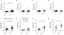 To investigate the impact of ALKBH5 and FTO in NSCLC, we examined the mRNA expression levels of ALKBH5 and FTO in non-cancerous lung tissues and NSCLC tissues using TCGA data. Accordingly, our results showed no significant difference in ALKBH5 mRNA expression between non-cancerous and cancerous tissues. By contrast, our findings showed that NSCLC had a significantly lower FTO mRNA expression than non-cancerous tissues (Fig. 1A). We subsequently investigated the protein expression levels of ALKBH5 and FTO in non-cancerous lung alveolar tissue and corresponding NSCLC tissues using TMA of patient samples. Furthermore, our results showed that cancerous tissues had significantly higher H-scores for ALKBH5 and FTO than non-cancerous tissues (Fig. 1B). ALKBH5 and FTO expression were evaluated in immortalized bronchial epithelial cells (BEAS2B) and lung cancer cell lines. Consequently, qPCR analysis demonstrated that ALKBH5 mRNA expression was higher in lung cancer cell lines except for LC-2/ad and RERF-LC–MS, whereas FTO mRNA expression was lower in lung cancer cell lines except for HLC-1, ABC1, and PC3 (Fig. 1C). Western blot analysis demonstrated that ALKBH5 was endogenously expressed in all lung cancer cell lines and FTO was expressed in almost all lung cancer cell lines except HLC-1 (Fig. 1D). IHC analysis showed that ALKBH5 and FTO were mainly localized in the nucleus of the cells (Fig. 1E). Furthermore, immunofluorescence analysis showed that ALKBH5 was localized in the nucleus of PC9 cells overexpressing ALKBH5 (Fig. 1F). We analyzed the clinical characteristics of 627 NSCLC cases used in IHC of TMA in the context of ALKBH5 or FTO expression in tumors of the HUSM cohort (Table S2). The median age was 68 (range, 23–88) years; 430 (68.6%) patients were male and 184 (29.3%) had never smoked. The tumors were histologically classified as adenocarcinoma (n = 413, 65.9%), squamous cell carcinoma (n = 170, 27.1%), or other histological types (n = 44, 7.0%). A total of 395 (63.0%) patients had stage Ι disease, whereas 127 (20.3%) cases had EGFR mutations. Postoperative adjuvant chemotherapy was prescribed to 258 (41.1%) patients. The median H-score values for ALKBH5 and FTO expression were 110 (0–225, range) and 65 (0–281), respectively, with high ALKBH5 protein expression being correlated with high FTO protein expression (r = 0.41) (Fig. S1A). Based on the median value, cases were divided into “high” and “low” expression groups, after which their association with clinical data as well as prognostic significance was examined. Lymph node metastasis, chemotherapy, and EGFR status significantly differed depending on ALKBH5 expression, whereas tumor status, lymph node metastasis, pathological stage, chemotherapy, and EGFR status significantly differed depending on FTO expression. Kaplan–Meier curves showed that patients with high ALKBH5 expression had significantly worse survival than those with low ALKBH5 expression (Fig. 1G: log-rank p = 0.0009 for OS; Fig. S1B: log-rank p = 0.0008 for RFS). Conversely, Kaplan–Meier curves showed no significant difference in survival between the low and high FTO expression groups (Fig. 1G: log-rank p = 0.20 for OS, Fig. S1C: log-rank p = 0.07 for RFS). Univariate analysis revealed high ALKBH5 expression as a predictor of unfavorable OS (HR, 1.675; 95% CI, 1.230–2.521). Moreover, multivariate analysis of age, sex, smoking status, histology, pathological stage, and ALKBH5 expression revealed that ALKBH5 expression was an independent prognostic factor associated with unfavorable OS (HR, 1.468; 95% CI, 1.039–2.073) (Table S3). To validate the prognostic value of ALKBH5 and FTO in other cohorts of patients with NSCLC, the lung cancer database in the Kaplan–Meier plotter was used. Accordingly, Kaplan–Meier curves showed that patients with high ALKBH5 expression had a significantly worse survival than those with low ALKBH5 expression (Fig. S1D: log-rank p = 0.014 for OS). In contrast, Kaplan–Meier curves showed that patients with high FTO expression had significantly favorable survival compared with those with low FTO expression (log-rank p < 0.0001 for OS) (Fig. S1E). These observations suggested that ALKBH5 played a critical role in the poor prognosis of patients with NSCLC.