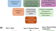 We performed weighted gene co-expression network analysis (WGCNA) across 20,530 genes for 519 samples comprising the TCGA HNSCC primary tumor cohort to determine central signaling networks associated with HNSCC prognosis (Fig. 1A) We identified 8 co-expression modules (Fig. 1B) with only weak inter-module correlation (Fig. 1C). Expression of individual genes from each module was assessed as a predictor of 5-year survival, using recursive binary partitioning, allowing identification of the most discriminatory level of gene expression for each gene (Fig. 1A). Overall, across the 8 modules, we identified 2305 genes where high expression was associated with increased survival (IS), and 2824 genes where high expression was associated with decreased survival (DS), resulting in 16 gene lists (Supplementary File 1). We summarized the 16 gene lists as module scores [14], and verified that the top and bottom quartiles of scores were predictive of survival (Fig. 2A). We observed that multiple WGCNA module-derived survival-associated gene lists were significantly enriched for central pathways and protein–protein interaction (PPI) networks (Table 1).