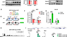 To further investigate the mechanism by which OGT depletion upregulates the TCA cycle, we performed transcriptomic analysis by RNA sequencing (RNA-seq) of HT-29 cells with or without OGT depletion. There were 2987 and 2694 differentially expressed genes (DEGs) with fold change >2 and p value < 0.05 significantly upregulated or downregulated in OGT-depleted HT-29 cells, respectively, compared to control cells (Fig. S3A). Gene set enrichment analysis (GSEA) showed marked enrichment of glucose metabolic pathways, mainly composed of glycolysis, the pentose phosphate pathway and the TCA cycle (Fig. 2A). Among the top 10 downregulated genes in glucose metabolism, PDK2 encoding pyruvate dehydrogenase kinase 2 is directly involved in the TCA cycle (Fig. 2B). GPI and PFK1 encode enzymes responsible for metabolizing glucose-6-phosphate and fructose-6-phosphate, respectively. The reduced mRNA expressions of GPI and PFK1 likely lead to accumulation of glucose-6-phosphate and fructose-6-phosphate as shown in Fig. 1M. Selected glucose metabolic genes were verified with real-time PCR (Fig. S3B). PDK2 is a mitochondrial enzyme that catalyzes phosphorylation of pyruvate dehydrogenase (PDH), resulting in PDH inactivation and the subsequent suppression of pyruvate conversion to acetyl-CoA [6, 9]. We confirmed that depletion of PDK2 in NCM460, HT-29, and HCT116 cells resulted in suppression of PDH Ser293 phosphorylation, a known marker of PDH inactivation (Fig. S3C) [7, 45]. The metabolic analysis consistently showed that PDK2 depletion significantly increased OCR, and reduced ECAR (Fig. S3D). The levels of key metabolites at the late phase of glycolysis pathway were reduced, while those in the TCA cycle were upregulated upon PDK2 depletion (Fig. 2C, D). In line with the this, ROS levels were significantly enhanced, while the relative levels of GSH and NADPH were decreased in cells with PDK2 depletion, which phenocopies OGT-depleted cells (Fig. S3E, G). Reconstituted expression of PDK2 in OGT-depleted HT-29 and HCT116 cells partially reduced ROS levels, increased the relative levels of GSH and NADPH, and rescued cell proliferation and colony formation (Fig. 2E–I and S3H–J). Consistently, depletion of PDK2 repressed cell proliferation in HT-29 and HCT116 cells, but not in NCM460 cells (Fig. S3K). To evaluate whether OGT regulates PDK2 expression, we depleted or ectopically expressed OGT in both HT-29 and HCT116 cells, and analyzed PDK2 expression. OGT depletion reduced, while OGT expression increased, both mRNA levels and protein levels of PDK2 (Fig. 2J–M and S3L–O). Together, these data indicated that OGT impacts the TCA cycle by regulating the transcriptional level of PDK2.