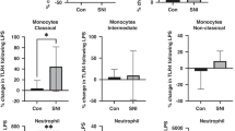 PBMCs freshly isolated from buffy coats of healthy donors by ficoll gradient and NSCs were resuspended in PBS with 5% FBS and 1:100 Fc block (30 min at room temperature (RT). Cells were then stained in PBS 5% FBS with anti-TLR4, anti-MD-2 (Supplementary Table S1) and anti-CD14 Alexa Fluor 647 (Supplementary Table S2) (30 min RT), washed twice with PBS and incubated with anti-rabbit Alexa Fluor 488 1:250 (Table S2) in PBS (30 min RT). Samples were washed twice incubated 1 min with 5 μg/ml of DAPI and immediately analyzed with Gallios flow cytometer. Analyses were performed with Flowjo X.