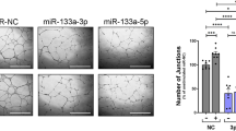 miR-494 has been shown to be highly upregulated in retinoblastoma27, cardiovascular pathologies such as cardiac injury28, and in atherosclerotic lesion development29. miR-494 has also been reported as an angiogenesis inhibitor, supporting our data here30,31,32. Esser et al.33 demonstrated that miR-494 is downregulated in ECs treated with the pro-angiogenic factor BMP4, in opposition to an increase in the pro-angiogenic miR-126. miR-494 has been implicated in tumor senescence and the development of resistance to radiation and chemotherapy33,34,35,36.