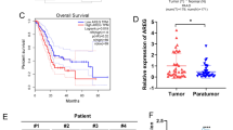First, the levels of miR-21 and Spry2 protein were detected in pancreatic TMAs. We found that miR-21 expression level was significantly higher in tumor tissues than in adjacent normal tissues (Fig. 7a). Further analyses demonstrated that high miR-21 expression significantly affected the T stage, N stage and AJCC stage (P < 0.05 for all, Supplementary Table 1 and Fig. 7b). Consistent with the function of Spry2 detected in our study, Spry2 protein expression was low in pancreatic cancer tissues (Fig. 7c), and downregulated Spry2 expression was associated with pathological grade, T stage, N stage and AJCC stage (P < 0.05 for all, Supplementary Table 2 and Fig. 7d). Furthermore, Kaplan-Meier survival curves along with the log-rank test demonstrated that high miR-21 expression predicted worse overall survival (OS) in PDAC patients (P < 0.05, Fig. 7e), and that low expression of Spry2 also notably reduced OS (P < 0.05, Fig. 7f). These data demonstrated that high levels of miR-21 and decreased Spry2 expression played important roles in PDAC progression and could be indicators of poor survival in PDAC patients.