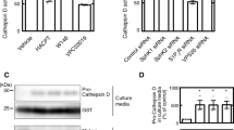 Mass spectrometry-based comprehensive proteomic analysis showed that IGF2R knockdown downregulated many proteins relevant to vesicular transport systems, consistent with the transcriptome analysis (Fig. 6a). Notably, two M6P-labeled lysosomal enzymes (cathepsin B and L) were downregulated by IGF2R knockdown. Under normal conditions, both cathepsin B and L are partly co-localized with IGF2R in cervical cancer cells (Fig. 6b). Analysis of external RNAseq data showed that four members of the cathepsin family (CTSD, CTSB, CTSZ, and CTSL) are relatively more highly expressed (Supplementary Fig. S4a). Moreover, proteome data showed that all the cathepsins were downregulated in IGF2R-knockdown cells (Supplementary Fig. S4b). The RNAseq data also revealed significantly poorer survival of patients with cervical cancer when related to high CTSB and CTSZ expression (Supplementary Fig. S4c). There was no correlation between the mRNA expression level of IGF2R and that of cathepsins (Supplementary Fig. S4d). The mRNA expression of cathepsins was not influenced much by the loss of IGF2R (Supplementary Fig. S4e). In contrast, the protein expression levels of cathepsin B and cathepsin L were significantly reduced by IGF2R knockdown (Fig. 6c, d). It is noteworthy that the loss of IGF2R downregulated the protein expression of mature cathepsins but showed a lower effect on their mRNA expression, suggesting the failure of post-transcriptional intracellular transportation of these proteins from the TGN to the lysosome. Considering that IGF2R knockdown suppressed lysosomal activity, the incomplete transportation of these cathepsins might be a leading cause of IGF2R depletion-induced apoptosis. The abnormal release of intracellular proteins is another probable cause of apoptosis, since most lysosomal hydrolases are secreted to extracellular regions in M6P receptor-deficient cells16. However, the secreted factors from the IGF2R-knockdown cells did not inhibit cell growth (Supplementary Fig. S4f). Cation-dependent mannose-6-phosphate receptor (CD-M6PR, hereafter M6PR) has also been reported as a major M6P receptor21. We further investigated the relationship between IGF2R and M6PR in cervical cancer cells. DNA microarray analysis showed that M6PR was not aberrantly expressed in cervical cancer tissues (Supplementary Fig. S4g). Furthermore, the mRNA expression levels of M6PR did not impact the prognosis of cervical cancer patients (Supplementary Fig. S4h). In contrast to IGF2R, M6PR knockdown did not influence intracellular cathepsins, protein ubiquitinylation, or cervical cancer cell survival (Supplementary Fig. S4i, j).