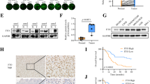 To reveal the important role of m6A modification in osteosarcoma, we explored the expression levels of 17 m6A-relative genes in osteosarcoma tissue and normal bone tissue (GSE87624: 3 normal and 44 osteosarcoma). As shown in Figs. 1a and S1A, we examined the expression of 17 m6A-related genes in GEO database, and found that WTAP, RBM15, YTHDF1, and YTHDF2 were differently expressed in tumor tissue compared with control tissue. The m6A writers were reported to play key role on the progression of various cancers, so WTAP was selected for further analysis. Next, we detected the expression of WTAP in 104 pairs of osteosarcoma tissue and the corresponding para-tumor tissues from The Third Xiangya Hospital of Central South University (TXHCSU). Consistent with the GEO results, the significant higher mRNA and protein levels of WTAP in osteosarcoma was detected using the qPCR and WB analysis (Fig. 1b, c). Moreover, the osteosarcoma patients with high WTAP showed poor overall survival in TXHCSU (Fig. 1d). And the univariate and multivariate cox analysis showed that WTAP and metastasis were the independent prognostic factor for overall survival in osteosarcoma patients (Fig. 1e). The prognostic nomogram was used to predict the probabilities of overall survival rates of osteosarcoma patients, and the calibration curves showed has a good consistency between the prediction and the actual observation (Fig. 1f). In addition, the 3 years ROC curve (AUC) of WTAP in osteosarcoma patients from TXHCSU was 0.718 (Fig. 1g). Besides, the overexpression of WTAP was associated with tumor size, metastasis, and TNM stage (Table 1 and Fig. S1B). Finally, the higher expression of WTAP was also detected in osteosarcoma cell lines (SJSA-1, MG-63, HOS, U2OS, and 143B) compared with that in the human osteoblast (hFOB1.19) cell (Fig. 1h). Collectively, these results demonstrated that WTAP is highly expressed in osteosarcoma and is correlated with its poor prognosis.