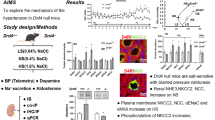 Hypertension was induced in rats or mice by the subcutaneous implantation of DOCA pellets (150 mg/rat or 50 mg/mouse) 1 week after unilateral nephrectomy. One percent NaCl drinking water was provided to all the DOCA treated animals, while control animals were maintained on tap water. Rat BP was monitored via the telemetry system (Data Science International, St Paul, Minnesota, USA). Mouse BP was measured by the tail cuff method (Kent Scientific Corporation, Torrington, CT, USA).