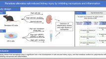 At the endpoint of experiment, blood samples were collected from abdominal aorta while rats were anesthetized with 2% isoflurane. The serum BUN (MLBio, ml623080) and IL-1β (MLBio, ml003057) were tested by the commercial available ELISA kits. Kidneys were removed and cut longitudinally. Half of the kidney was fixed in 4% paraformaldehyde and the other half dissected into cortex and medulla, frozen in liquid N2, and stored at −80 °C.