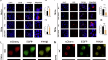 A Fluorescence microscopy of successful infection of HeLa cells with lentivirus containing pGV248-NCAPH shRNA (siNCAPH) and pGV248 control vector (LV-NC). Scale bars, 100 μm. B Western blot analysis confirmed the knockdown of NCAPH in HeLa cells after 6-weeks of selection using puromycin. C, D The selected HeLa cells were injected into the axillary fossa of the mice. Ten weeks after injection, GFP expressing tumors were imaged in live mice. Then mice were humanely killed, and tumor volumes were calculated (six mice in each group). Representative images are shown. E The expression of NCAPH in tumors was determined by real-time PCR. F HE staining showed that tumors in the LV-NC group exhibited obvious muscle invasion, but those in the siNCAPH group were well-encapsulated. Scale bars, 100 μm. G Immunohistochemical staining showed that ZO-1 protein signal was enhanced while vimentin was weakened after knockdown of NCAPH expression in mice tumors. Scale bars, 100 μm. Data are presented as mean ± SD (n = 3). * represents p < 0.05, ** represents p < 0.01.
