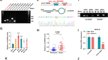 a RNA-seq analysis of circRNAs was performed in three paired tumor xenografts from the control vehicle group and apatinib group. b qRT-PCR was performed in vivo to confirm the circRNA-seq results. c–f qRT-PCR was used in BGC-823 cells and HGC-27 cells cultured with apatinib to detect the expression of circRACGAP1 (c, d) and RACGAP1 (e, f). NS: not significant. g CircRACGAP1 was validated by Sanger sequencing. h RNA FISH was performed to detect the localization of circRACGAP1 in BGC-823 cells. 18S rRNA was used as a positive control for the cytoplasmic fractions. Bar scale, 10 μm. i A schematic model showing the putative binding sites of miRNAs (fold change ≥2 or ≤ −2) and circRACGAP1 using miRanda. j RNA immunoprecipitation (RIP) for AGO2 in BGC-823 cells was performed. CircRACGAP1 and miR-3657 expression levels were detected by qRT-PCR. k The predicted binding sequences for miR-3657 within the human circRACGAP1 3′UTR by TargetScan. The mutation sequences of circRACGAP1 Mut are shown in red. l Luciferase activity was measured in BGC-823 cells transfected with miR-3657 mimics or control miRNA, and circRACGAP1 Wt or circRACGAP1 Mut. The luciferase activity was normalized to that in cells transfected with control miRNA. *P < 0.05; **P < 0.01.