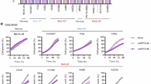 The immortalized non-tumorigenic normal ovarian epithelial T72 cell line and the tumorigenic HRASG12V-transformed T72Ras cell line were generated as previously described12,32. Both T72 and T72Ras cells were cultured in a 1:1 mixture of M199 and MCDB105 (Sigma-Aldrich) with 10 ng/ml epidermal growth factor and 15% fetal bovine serum. Panc-1 cells were human patient-derived pancreatic ductal adenocarcinoma (PDAC) cancer cell line (from ATCC) that carries both oncogenic KRAS and p53 mutations33. Murine KPC cells were generated from PDAC tumors of KPC mice carrying both KRASG12D and p53R172H mutations34. L3.6pl cells, which were generated from metastatic liver nodules of a pancreatic cancer patient35 carrying the KRASG12D mutation36, were generously provided by Dr. Isaiah J. Fidler (The University of Texas MD Anderson Cancer Center, Houston, TX). Panc-1, L3.6pl, and KPC cells were cultured in DMEM (Gibco) supplemented with 10% fetal bovine serum (FBS), penicillin, and streptomycin (Invitrogen). HCT116 p53+/+ colon cancer cells (called HCT116+/+) carrying wild-type p53 and their isogenic HCT116 p53−/− cells (called HCT116−/−) were cultured in McCoy5 (Hyclone) medium with 10% FBS. All the cells were free of mycoplasma contamination. DPI, BSO, N-acetyl-L-cysteine (NAC), and propidium iodide (PI) were purchased from Sigma, and Annexin V was from BD Biosciences. The different ranges of the effective concentrations of DPI and BSO for different cell lines or xenografts were pre-determined in pilot experiments or followed our previous studies.