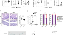 Experiments were performed in duplicate or triplicate, and two independent tests were performed for each assay except for microbiota sequencing. The sample size for each experiment was chosen based on published literature with a similar methodology. Two-group comparisons were performed with either a two-tailed unpaired Student’s t-test or Mann–Whitney test. Data differences between groups were examined for statistical significance using one-way ANOVA with the Tukey post hoc test or Kruskal–Wallis test with Dunn’s post hoc test. The normality of the data distribution was analyzed using the Kolmogorov–Smirnov test. A P value <0.05 was considered significant. GraphPad Prism 8 (GraphPad, San Diego, CA, USA) was used for the data analysis. There were no studies in which investigators were blinded.
