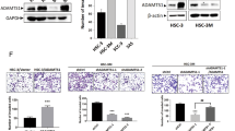 As described before, ADAMTS9 deletion was positively associated with LN metastasis. Thus, we investigated the effect of ADAMTS9 on motility of AGS, BGC-823, and SGC-7901 cells. Wound healing assays showed that ADAMTS9 significantly reduced the migration distances compared to that of control cells (AGS cells at 48 h, P < 0.001; BGC-823 cells at 48 h, P = 0.009; and SGC-7901 cells at 36 h, P < 0.001; Fig. 2G and Supplementary Fig. S1D). Moreover, transwell assays showed that ADAMTS9 impaired migration and invasion in GC cells (migration assay: AGS, P = 0.003; BGC-823, P = 0.010; and SGC-7901, P = 0.010; invasion assay: AGS, P = 0.035; BGC-823, P = 0.010; and SGC-7901, P = 0.004; Fig. 2H and Supplementary Fig. S1E). Together, these results demonstrated that ADAMTS9 attenuated malignancy in GC.