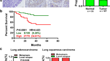 A total of 169 primary lung adenocarcinoma specimens were obtained from the Affiliated Huai’an Hospital of Xuzhou Medical University. All participants were provided with written informed consent at the time of recruitment. The diagnosis of lung adenocarcinoma was verified for all of these samples based on their histological and pathological characteristics. Before tissue sampling, none of the patients had received any therapy, such as chemotherapy or radiotherapy. The present study was approved by the Ethics Committee of the Affiliated Huai’an Hospital of Xuzhou Medical University. All samples were stored frozen at −80 °C.