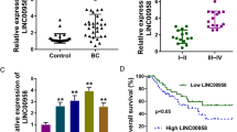 Long non-coding RNAs (lncRNAs) are a class of non-coding RNAs that are >200 nucleotides in length [9, 10]. New studies have shown that lncRNAs play a critical role in a wide range of cellular processes that could regulate multilevel gene expression, including transcription, posttranscriptional alternative splicing, protein translation and modification, protein transport, localization, and more [11,12,13,14,15]. Abnormal expression of lncRNAs is closely related to the occurrence, development, metastasis, and drug resistance of malignant tumors, including BC [16,17,18]. For instance, Niu et al. found that a lncRNA, RAB11B-AS1, promoted hypoxia-mediated angiogenesis and BC metastasis driven by hypoxia-inducible factor-2 [19]. Furthermore, Liang et al. demonstrated that a novel lncRNA, BCRT1, promoted BC progression by activating the miR-1303/PTBP3 axis [20]. Moreover, recent reports have revealed that lncRNAs can also be packaged into exosomes to participate in intercellular communication in BC metastasis and progression [21, 22]. Thus, such studies suggested that lncRNA may be critical in the pathogenesis of BC and provide new molecular targets for BC treatment and prognosis.