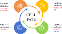 Long non-coding RNAs (lncRNAs) belong to a class of non-coding transcripts longer than 200 nucleotides [11]. They may work as signals, as scaffolds for protein–protein interactions, as molecular decoys, or guides to target elements [12]. LncRNAs have emerged as new regulators of various cell activities, such as cell proliferation, death, and differentiation [13, 14]. Deregulation of lncRNAs can promote tumor development, self-renewal of cancer stem cells, and drug resistance [15, 16]. Recent evidence shows that knockdown of lncRNA EPIC1 reduces the c-Myc’s occupancy on the promoters of c-Myc target genes and curtails their expression [17]. In contrast, lncRNA GLCC1 and PVT1 can increase the stability of c-Myc protein [18, 19]. These findings suggest that lncRNAs may play important roles in regulating c-Myc function. However, lncRNAs that regulate c-Myc and, in turn, cell cycle progression remain to be explored.