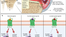 Extensive studies have indicated that inflammatory diseases decrease the pH of the extracellular environment [11, 12]. Increasing evidence shows that an acidic extracellular environment plays an important role in various pathological processes including bone remodeling and arthritis [13, 14]. However, there are controversial reports regarding environmental pH regulation in OA joints. It has been reported that the pH value of OA synovial fluid is 7.38–7.55 [15,16,17]. However, another study showed that the degenerating superficial zone of articular cartilage is acidic, in which a pH of 6.7–7.5 was observed in grade 0 cartilage surfaces, while the pH was 4.5–6.5 in grade 3 cartilage surfaces [18]. Acid sensing is essential for maintaining normal cell function through acid-sensing ion channels or proton-activated G protein-coupled receptors (GPCRs) [19, 20]. The proton-activated GPCR family includes 4 members, GPR4, GPR65 (TDAG8), GPR132 (G2A), and GPR68 (OGR1) [19]. GPR4, cloned as an orphan receptor in 1995 [21], is widely distributed and expressed in many human tissues, including lung, kidney, liver, dorsal raphe neurons, and heart [21, 22]. GPR4 is a novel proton-activated receptor, activated at a slightly acidic pH [19]. Previous studies have shown that in endothelial cells, GPR4 can sense acidic pH and induce the expression of a series of inflammatory factors including interleukins (ILs), as well as adhesion molecules including VCAM1, ICAM1 [23]. The expression of RANKL in osteoblasts in an acidic environment is mediated by cAMP/PKA signals downstream of GPR4 activation [24]. In addition, GPR4 promotes VEGFA secretion via the p38 signaling pathway in squamous cell carcinoma of the head and neck [25]. In endothelial cells, GPR4 can active acidosis-induced ER stress and inflammation [26]. Recently, the anti-inflammatory role of the GPR4 antagonist NE52-QQ57 in rat antigen-induced rheumatoid arthritis as well as in a hyperalgesia and angiogenesis model has been reported [27]. An in vitro study indicates that a GPR4 antagonist inhibited the advanced glycation end product (AGE)-induced increased expression of several key inflammatory cytokines and signaling molecules in the human chondrocyte SW1353 cell line [28]. However, the functions of proton-activated GPCRs in regulating OA pathogenesis have not been studied.