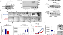 In the xenograft model, 2 × 106 HT-29 cells were implanted into the flanks of Rag1−/− mice via subcutaneous injection (n = 8/group). MC-38 cells were injected subcutaneously (1 × 106 cells) into the flanks of B6/J mice (n = 8/group) or into the colon mucosa (1 × 104 cells) of C57BL/6J mice (n = 5/group). Tumor size was measured at serial time points using a digital caliper and the tumor volume was calculated using V = (length × width × height)/2, or scored as previously described [41, 42]. Each experiments was replicated independently in other experimental models and using other cell lines as described above.